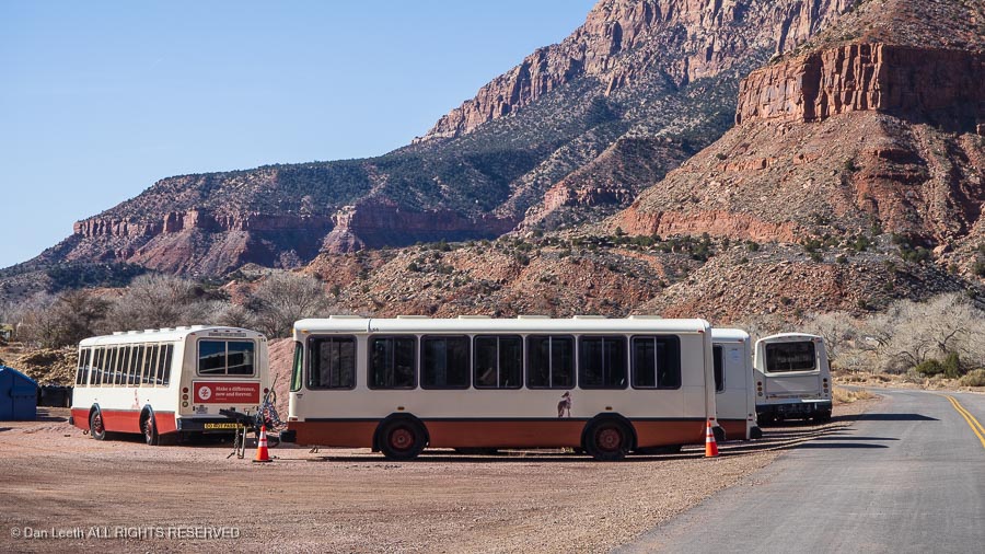 The nice thing about winter in Zion is that we can drive where we want and not have to take these damn shuttle busses around.