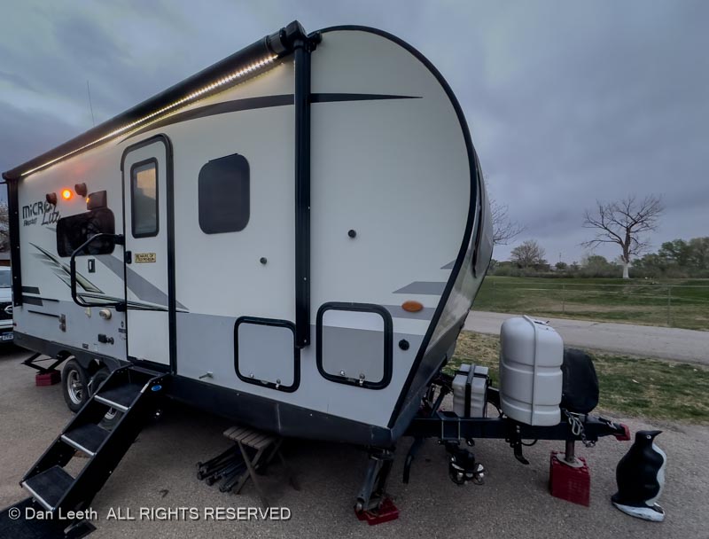 Back at Duke’s (two burgers later), Dianne texted the Duke, got our assigned campsite and we moved in. These are double-wide sites, giving us more room than a typical RV park site.