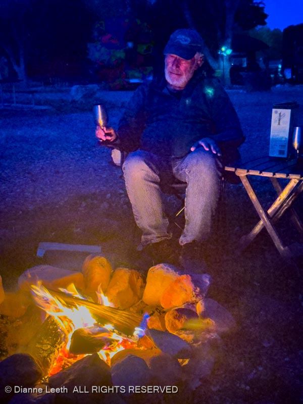 Here, we had steaks and wine with Therese, one of Dianne’s fellow LifeVantage peddlers, and her husband, Rick, who are also camping here at the KOA. With all of the actual real plants surrounding us, it was like dining al fresco with neither wind nor bugs.