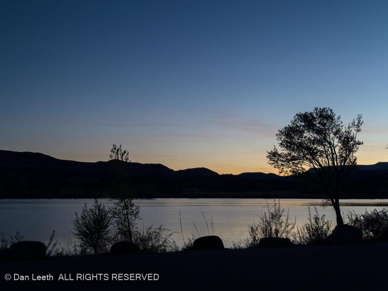 Back at camp, we dined on chips and salsa while looking across the still waters of the reservoir.
