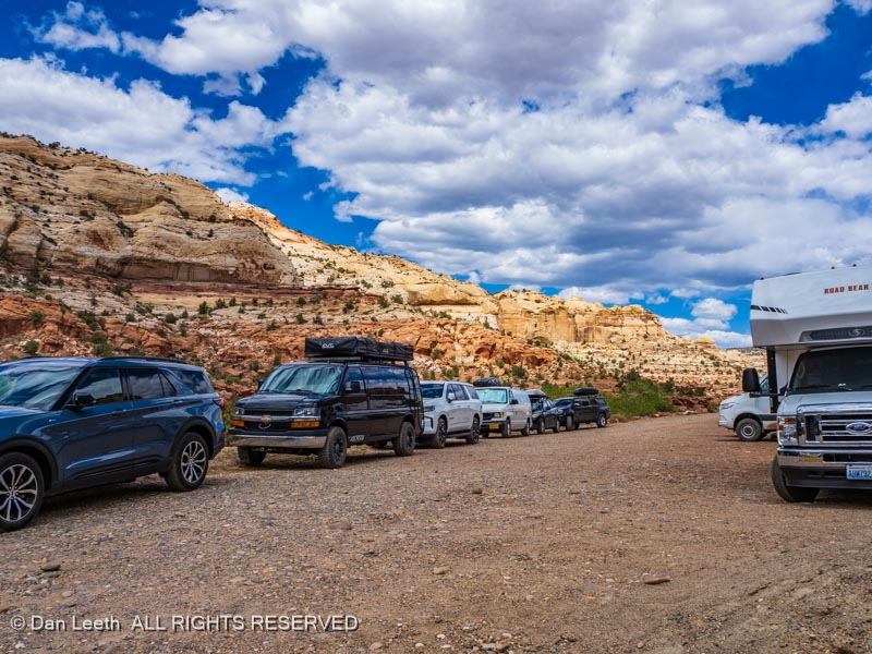 After a lazy morning in camp, we finally set off for today’s hike – a seven mile stroll to lower Calf Creek Falls. Our first obstacle was finding a place to park.
