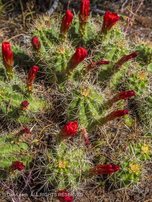 …and some claret cup hedgehog cacti beginning to display a spiny bouquet of intense scarlet blossoms.