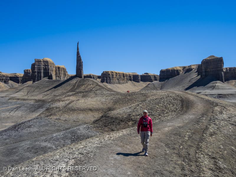 We followed the directions we were given and soon reached the trailhead for our one mile hike to the spire. The fence was to keep vehicles out, but as we know, the rules don’t apply to everyone. We saw one Jeep-driving touron drive through the restricted area and were told that another did the same earlier.