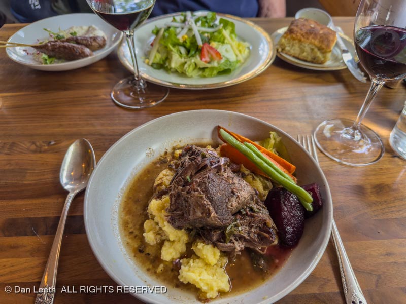 I had braised bison while Dianne had a salad and lamb skewers. We enjoyed all this with a bottle of red wine from the Douro Valley of Portugal. All was very tasty.