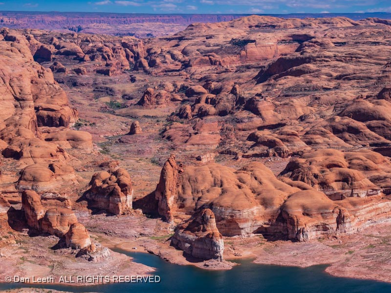 At the bottom, the pioneers built rafts and ferried the wagons across what then just a river. From there, they continued overland until they got to the site of Bluff where they said “that’s enough” and settled down. Today, the diminishing waters of Powell Reservoir fill the canyon bottom where the Colorado River once flowed.